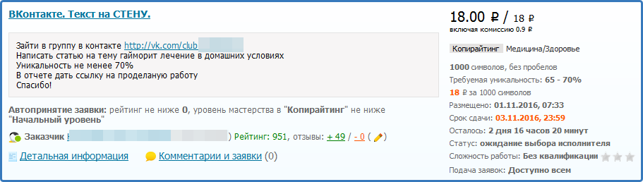 3. Как заработать в Контакте, создавая первые статьи? Пример несложного задания. Посты для групп и сообществ пишут обычные люди, поэтому при заказе подобных текстов к исполнителю не предъявляют жёстких требований, как для текстов, размещаемых на серьёзных сайтах. Легко начать деятельность именно с таких заказов.