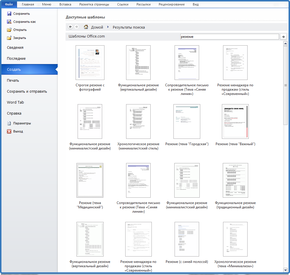 Если человек не умеет осуществлять поиск в интернете, на помощь придёт текстовый редактор Word. Он предложит несколько десятков шаблонов.