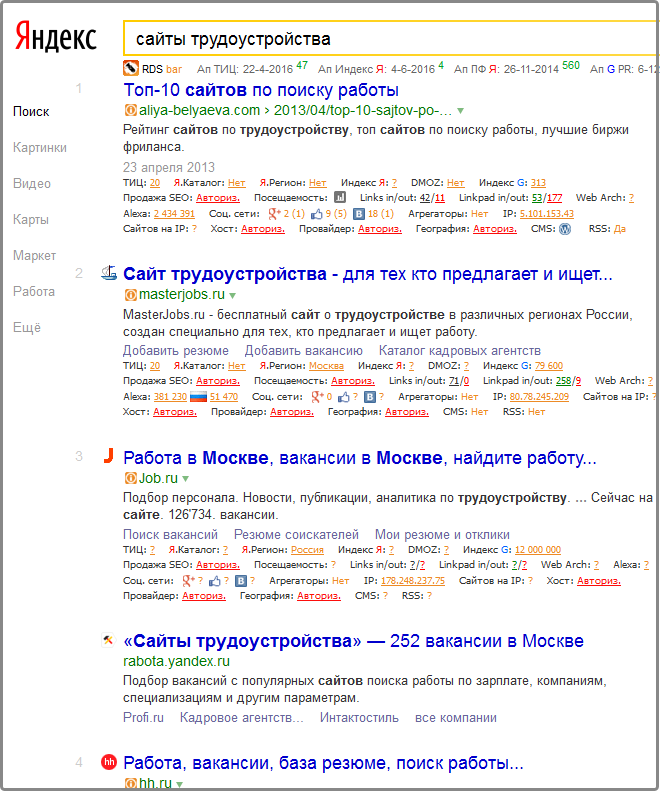 Как искать с помощью интернета? Достаточно ввести в поисковую строку запрос «сайты трудоустройства» и посмотреть предложения поисковой системы.